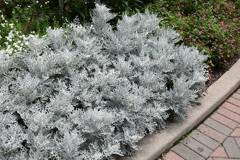 Silver Dust Dusty Miller will grow to be about 12 inches tall at maturity, with a spread of 12 inches. When grown in masses or used as a bedding plant, individual plants should be spaced approximately 8 inches apart. It grows at a medium rate, and under ideal conditions can be expected to live for approximately 10 years. As an herbaceous perennial, this plant will usually die back to the crown each winter, and will regrow from the base each spring. Be careful not to disturb the crown in late winter when it may not be readily seen!